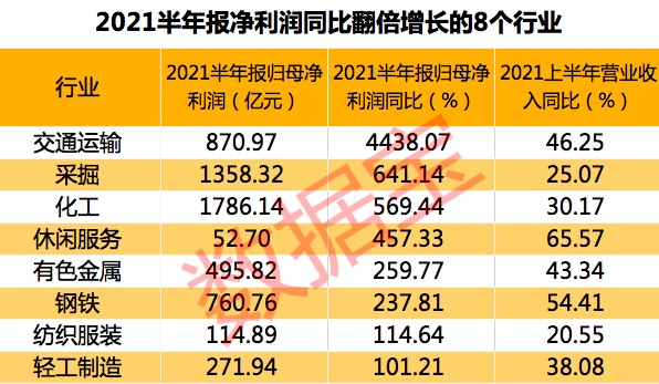 A股半年报长这样:八大行业打出漂亮翻身仗