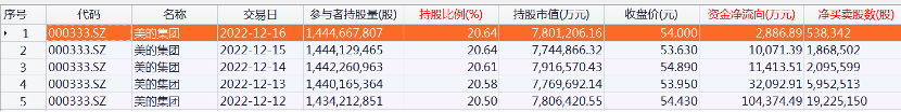 从成交均价和加仓股数来计算,美的集团为本周北向资金增持金额最大的股票,增持2968.01万股,加仓金额达16.08亿元。从明细数据来看,本周北向资金连续5个交易日加仓美的集团,其中12月12日加仓超10亿元。