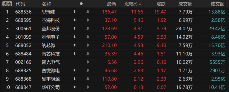 在中国反制美国所谓“对等关税”的背景下,模拟芯片板块持续受到市场关注。今日收盘,思瑞浦涨超11%,芯海科技涨超5%,圣邦股份、纳芯微等跟涨。其中思瑞浦股价在上周已涨超15%的基础上,本周再度累计上涨约28%。
