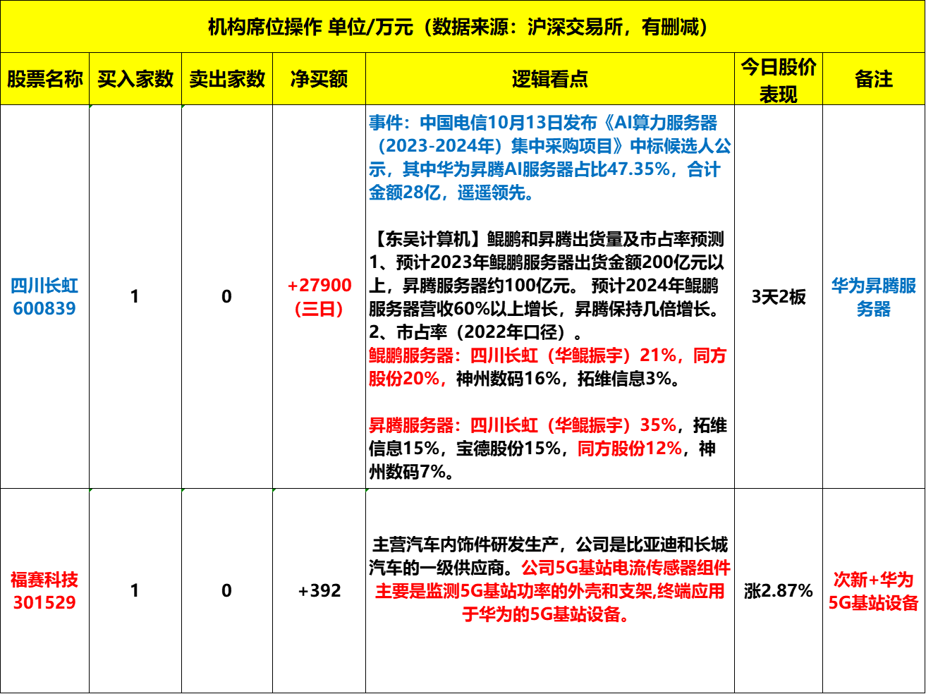 龙虎榜:机构扫货华为算力龙头!游资抱团炒通源石油