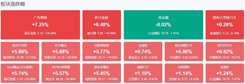 板块方面,人形机器人、小红书概念、智谱AI、互联网金融等板块涨幅居前,贵金属等少数板块下跌。截至收盘,沪指涨1.75%,深成指涨2.42%,创业板指涨2.68%。