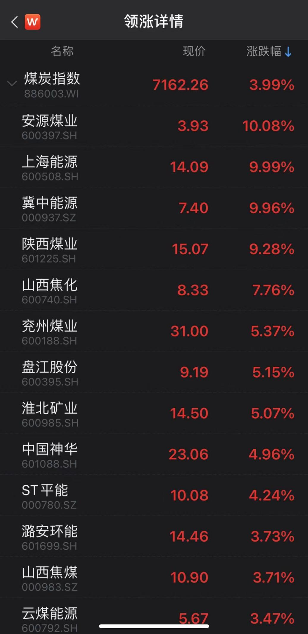 今日,煤炭板块大幅反弹,Wind煤炭指数上涨3.99%,板块内安源煤业、上海能源、冀中能源涨停,陕西煤业涨逾9%,山西焦化涨逾7%。