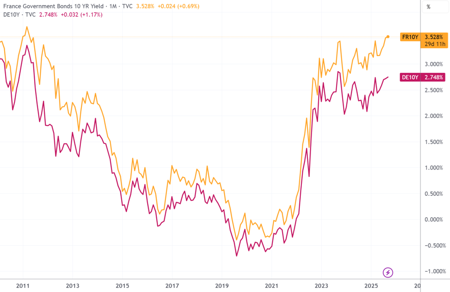 (法、德十年期国债收益率,来源:TradingView)