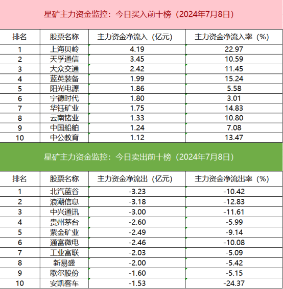 主力资金流出前十的个股中科技股较多,北汽蓝谷净流出居首。