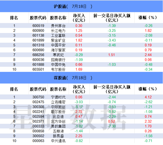 沪深股通两市前十大成交中净买入个股数量较多,北向资金对科技股产生较大分歧,其中歌尔股份、新易盛、韦尔股份等获净买入,中际旭创、立讯精密、北方华创等遭净卖出。此外,再创历史新高的长江电力获净买入。