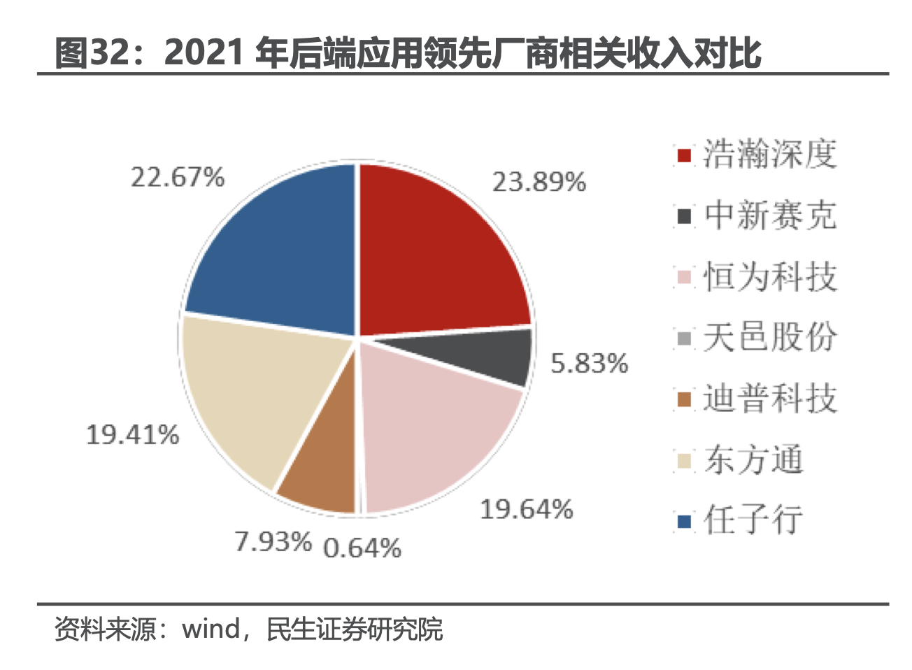 具体来看,方正证券研报显示,基础机构产品提供商属于网络可视化前端,主要厂商包括中新赛克、迪普科技、恒为科技、恒扬数据等,负责数据的采集、处理和分流;应用开发商与系统集成商属于网络可视化后端产业,应用开发商包括中新赛克、锐安科技、烽火星空、百卓网络等,主要为下游集成商或最终用户提供应用系统,主要系统集成商企业有美亚柏科、烽火星火、太极股份等。