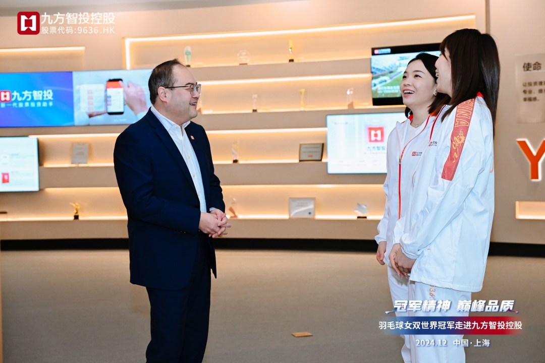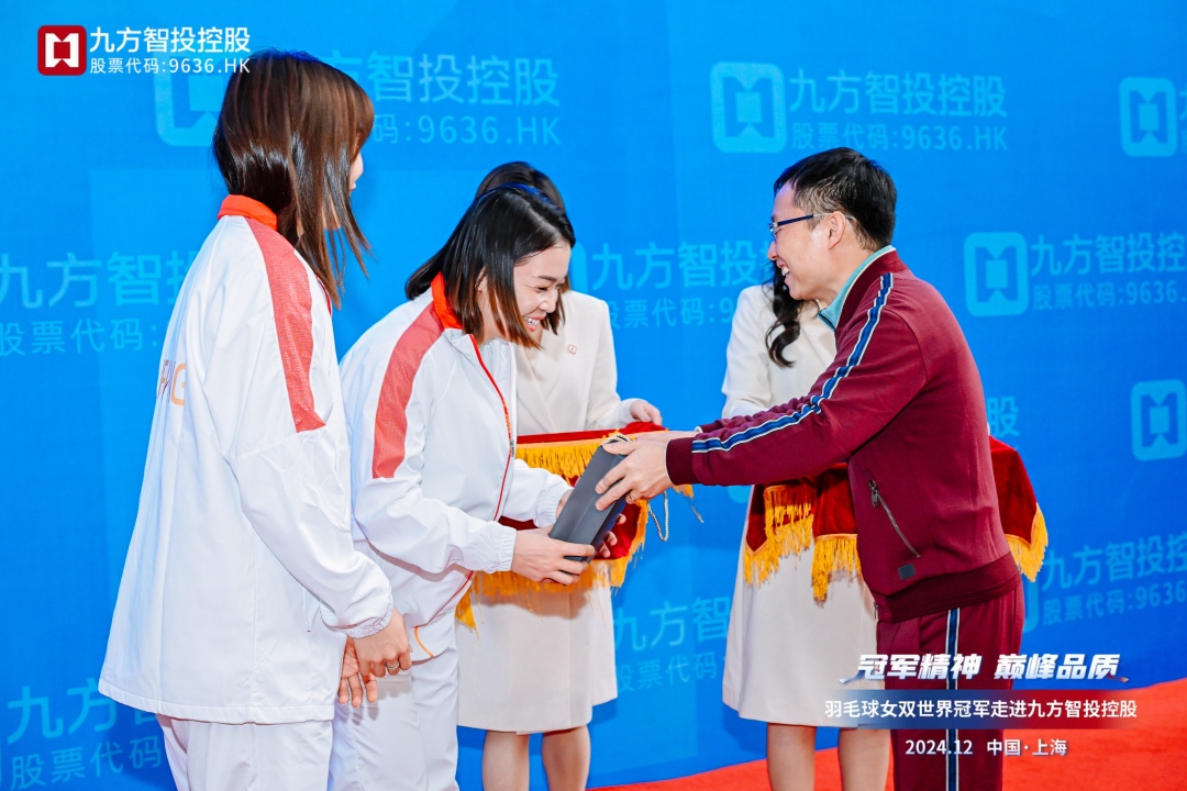 世界冠军来了!12月27日,九方智投控股(9636.HK)迎来了羽毛球女双世界冠军贾一凡、陈清晨的到访,两位冠军与九方智投控股高管和员工进行了亲切交流、趣味互动,展现了冠军的飒爽英姿,传递了奋力拼搏、勇攀高峰的体育精神。