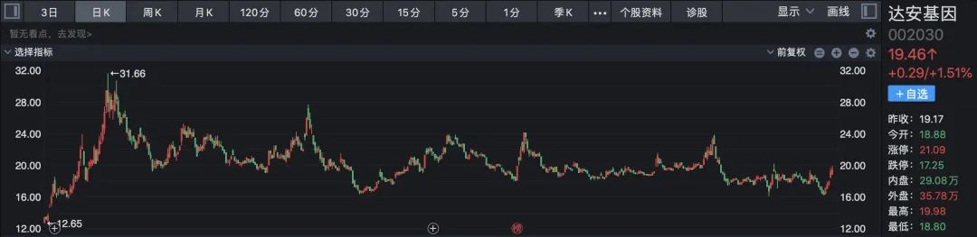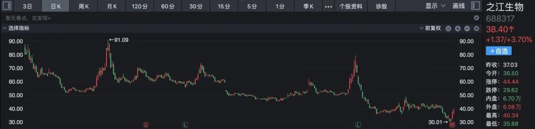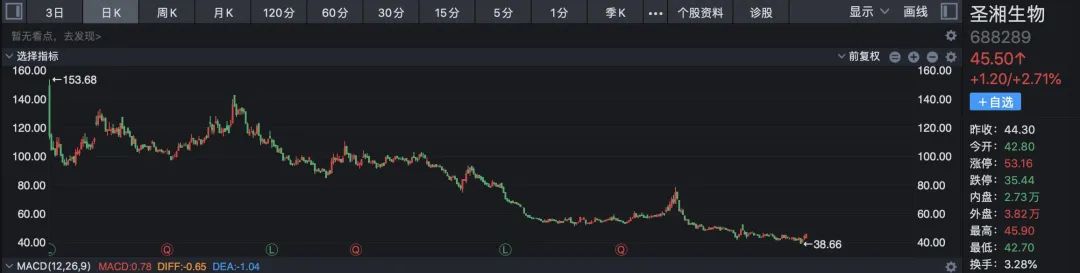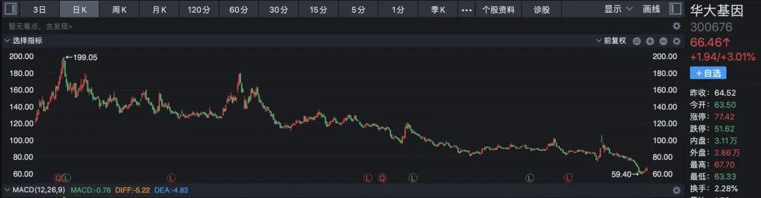值得注意的是,从二级市场来看,圣湘生物、华大基因、达安基因股价自2020年高位迄今,累计最高跌幅分别为74.84%、70.15%、49.14%;之江生物自2021年年初已跌近60%。