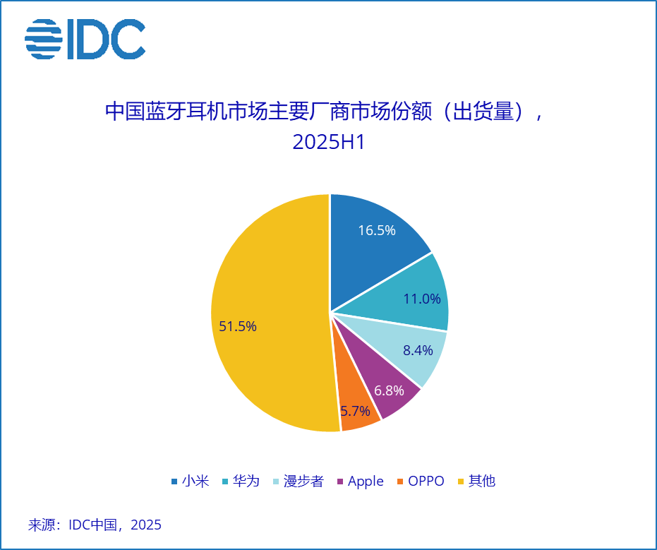 IDC:2025上半年蓝牙耳机市场出货量约5998万台 同比增长7.5%