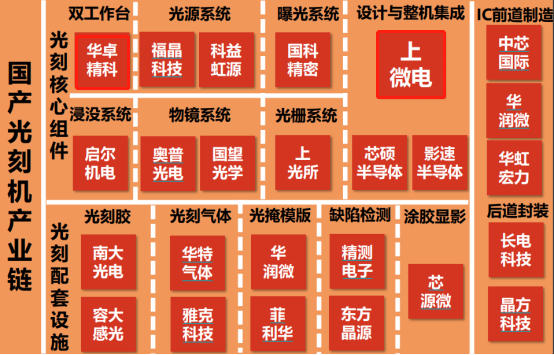 方正证券研报梳理国产光刻机产业链,具体如下: