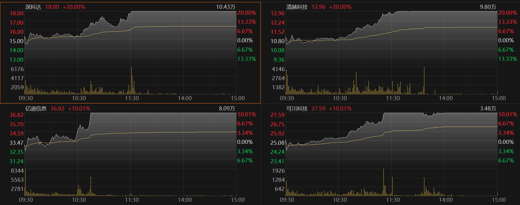 二级市场上,混合现实(MR)概念股春节前最后一个交易日爆发,MR生产设备主要用于MR Pancake镜片生产环节的深科达、硅基OLED产品可用于MR头戴显示产品中的清越科技均在当日收盘收获20CM涨停;产品涵盖MR/AR等多种产品形态的亿道信息、下游客户的OLEDoS显示器产品在VR/AR/MR等众多消费电子产品等行业中均有应用前景的可川科技均收盘涨停。