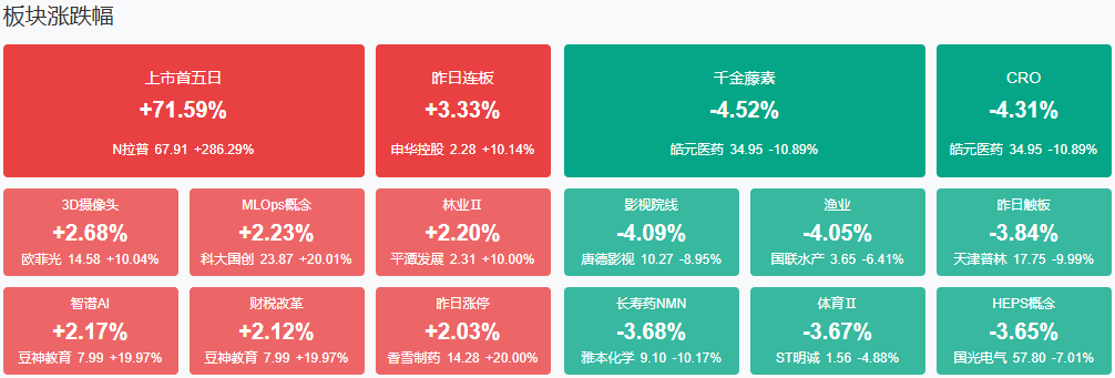 板块方面,智谱AI、脑机接口、AI手机、量子科技等板块涨幅居前,影视、煤炭、钢铁、CRO等板块跌幅居前。