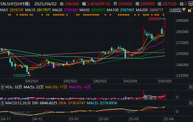 行情数据显示,截至发稿,LME锡在本周已进一步强势上涨了逾5%,使得年内迄今的累计涨幅达到了惊人的约31%。而沪锡也在日内进一步大涨了逾3.5%,价格已逼近了30万元大关。