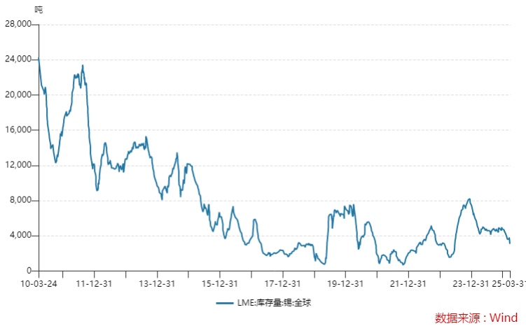 值得一提的是,在锡供应持续受限的同时,目前LME的锡库存也正在明显下降。根据LME的数据显示,目前其注册仓库的锡库存已处于2023年年中以来的最低水平。