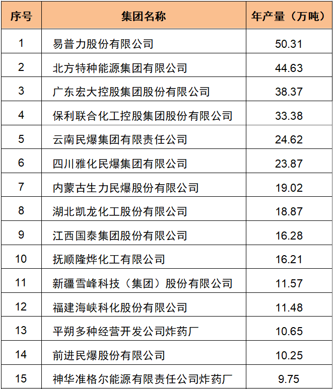 (2023年生产企业集团工业炸药年产量前20名数据来源:中爆协)