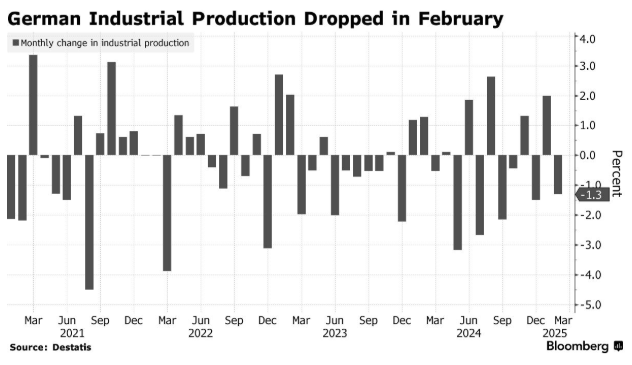 德国 2 月份工业产出降幅超过预期,凸显出该国关键行业面临的挑战,而美国总统特朗普激进的贸易政策将带来新的阻力。