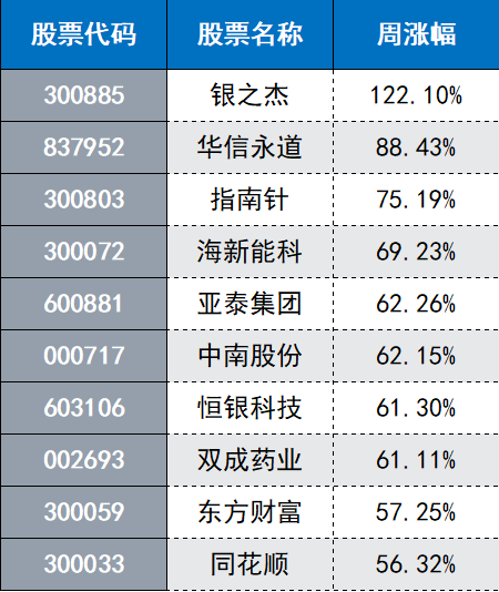 而从本周个股涨幅榜来看,市场短线热点主要还是集中在金融科技与并购重组两大方向。方正证券自近期研报中指出,政治局会议的政策提振了资本市场,中长期资金入市政策的落地进一步推动了金融科技行情。市场风险偏好的改善成为金融科技板块预期修正和基本面回暖的关键因素。故银之杰、指南针、东方财富、同花顺等均于上周涨幅居前,若后续延续增量上涨行情的话,金融科技方向或仍有望继续扮演“领涨先锋”的角色。
