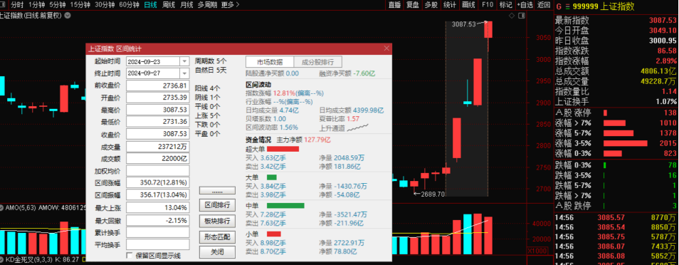 刚刚过去的一周,受一系列政策组合拳的利好刺激,市场迎来了波澜壮阔的反弹行情。其中沪指单周上涨12.81%,一举逼近3100点,而创业板指单周涨超25%,更是创下了涨幅以及成交额的历史记录。那么后续反弹能否延续,无疑当前市场最为关注的重点。