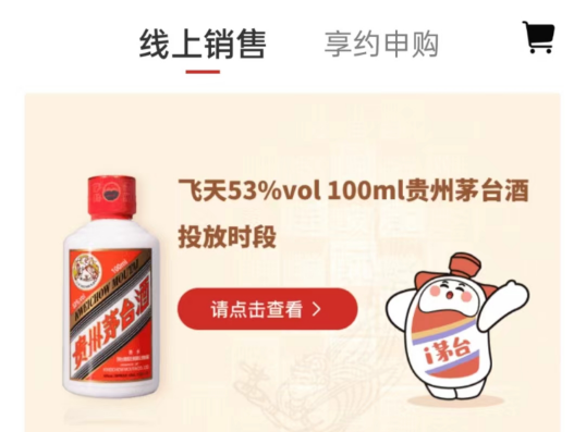 此前,5月19日,“i茅台”在试运行一个多月后,宣布正式上线,并于上线首日在平台上同步上架包括100ml飞天茅台在内的5款产品。