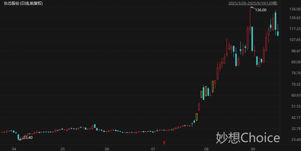 东芯股份2021年全球NOR Flash市占率0.4%;聚焦中大容量NOR Flash,已量产128/256Mb产品,并通过堆叠方式供应512Mb和1Gb产品。2023年全球SLC NAND Flash市占率1.4%;NAND产品容量覆盖512Mb至32Gb,已通过联发科、瑞芯微、中兴微、博通等主流平台厂商的验证认可。东芯股份股价自4月低点迄今累计最大涨幅481.2%。