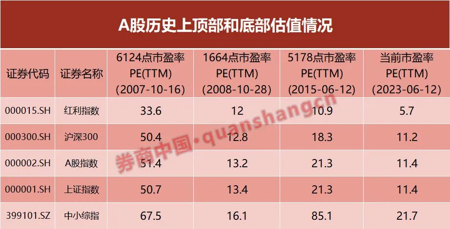 A股最近一次钟摆的高点是2015年6月份,上证指数一度达到5178点阶段性新高,市场局部明显高估,中小板综指市盈率高达85倍,创业板指数市盈率高达133倍,上证指数市盈率为21倍。而当前市场信心缺失,估值却位于钟摆的低点,红利指数市盈率为5.7倍,沪深300的市盈率为11倍,上证指数的市盈率为11倍。
