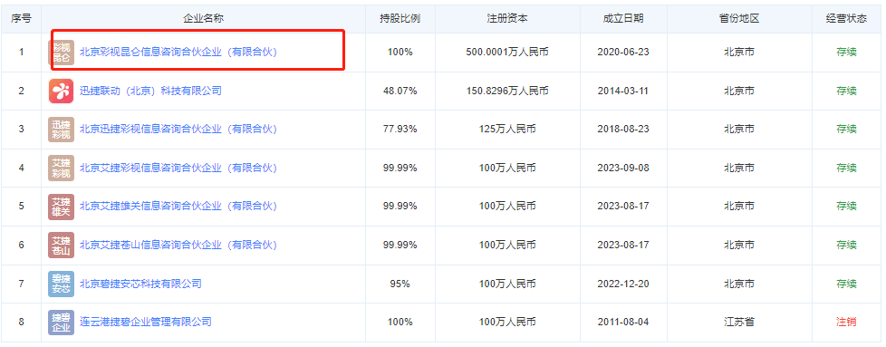 明面上,双方过往没有直接的资本关联,唯一比较“扎眼”的,是卞抗旗下的一家持股比例100%的公司,名为北京彩视昆仑信息咨询合伙企业,名字中也带有“昆仑”字样,容易和昆仑万维产生联想。