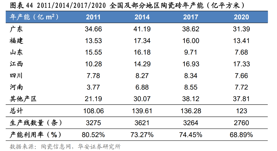 华泰证券分析师方晏荷9月14日研报认为,建筑陶瓷产能过剩是制约行业中长期成长的重要因素。《中国瓷砖产能调查报告》显示,我国陶瓷砖的产能利用率较低,2020年全国陶瓷砖的产能利用率为68.89%。2021年全国规模以上建筑陶瓷企业1048家,相比2019/2020年减少112/45家,在能耗指标受限及行业需求压力下中小企业持续出清。