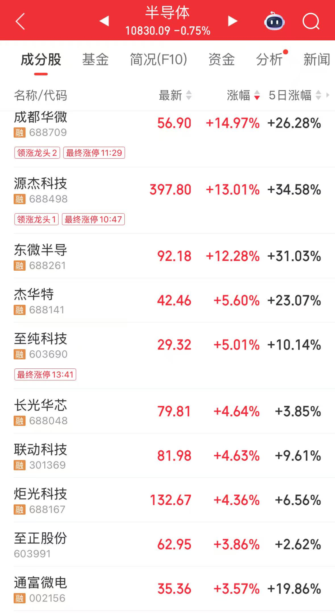 今日盘面上,凯美特气、至纯科技均一度封住涨停板,收盘时涨幅均有所回落。新莱应材盘中一度涨超12%,收盘涨幅3.62%。