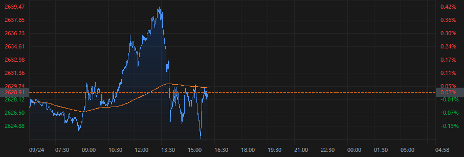 9月24日讯 周二(9月24日)欧市早盘,现货黄金价格短线走高逾10美元,短暂突破2640关口,最高时报每盎司2640.15美元,续刷历史新高。