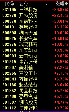 此外,汽车零部件板块掀起涨停潮。车联网、智能座舱、汽车服务、无人驾驶等板块也表现活跃。