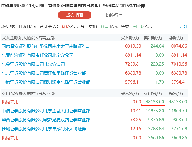 龙虎榜:“歼20”重组上市!中航电测游资把机构洗出去了?