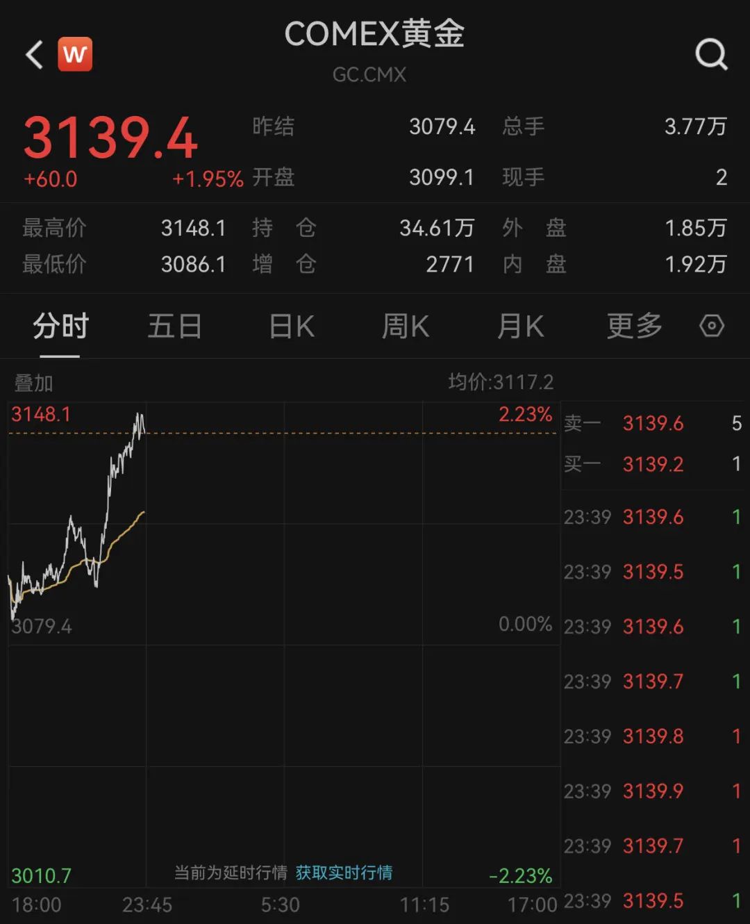 此外,国际金价盘中突然拉升,截至发稿,伦敦金现涨超1%,COMEX黄金涨近2%。