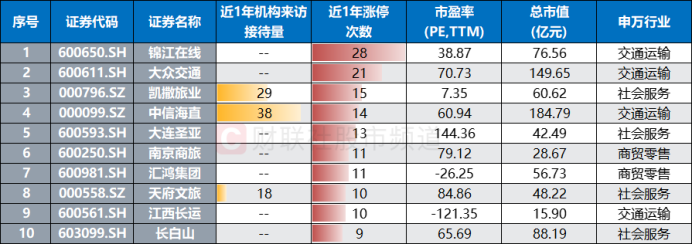 注:近1年机构调研量居前的旅游、出行相关概念股(截至3月31日收盘)