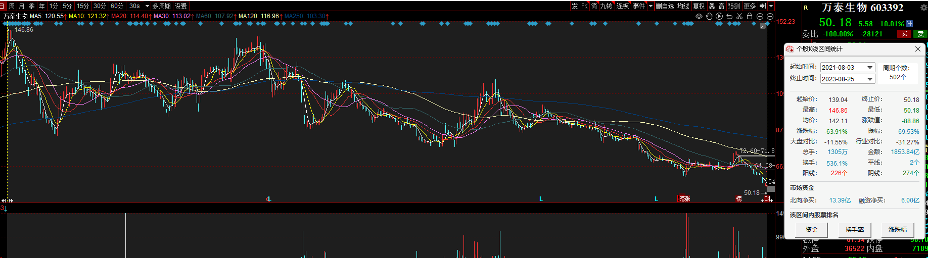 业绩方面,万泰生物与沃森生物分别于本周四和周五盘后相继发布半年报。万泰生物公告,上半年营业收入41.64亿元,同比下降29.78%;归母净利润17.02亿元,同比下降36.78%。公司表示,二价宫颈癌疫苗及新冠相关产品销售收入出现较大下降,导致净利润下降。业绩发布次日,万泰生物股价“惨遭跌停”。沃森生物公告,上半年营收21.68亿,同比下降7.68%;净利润4.55亿,同比增长8.13%。公司表示,上半年子公司玉溪泽润双价HPV疫苗批签发量同比增长368.42%。
