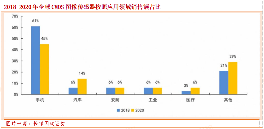手机为CMOS图像传感器规模最大的应用市场,汽车领域快速增长,医疗领域亟待爆发。