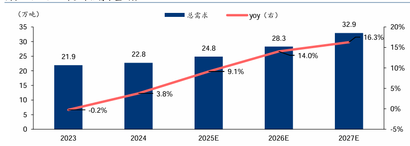 图:全球钴金属需求量测算 |