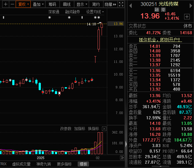 开年三个交易日光线传媒股价连日大涨,2月5日直接开启“20cm”强势涨停,2月6日、7日连续上涨,累计上涨近47%。