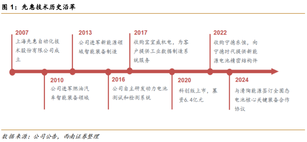 2013年起,切入新能源汽车智能装备领域:公司根据自身技术积累及未来市场判断,切入新能源汽车智能装备领域,为宁德时代新能源、合肥国轩等国内知名新能源汽车动力电池企业提供智能生产线,成为国内较早进入新能源汽车智能装备领域的智能装备供应商。公司通过自身技术积累,逐步丰富新能源汽车智能装备领域的产品线,在动力电池模组/电池包(PACK)生产线基础上,2016年起自主研发了动力电池测试和检测系统;2017年成功研发了燃料电池电堆/系统生产线。