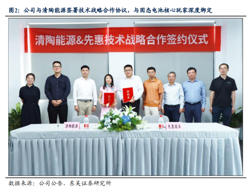 2024年7月,先惠技术与专注于氧化物路线的清陶能源签署合作研发协议,围绕全固态电池核心关键装备开展联合开发与产业化布局,标志着公司正式切入固态电池前道设备领域。
