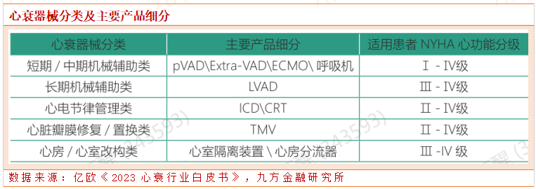 根据器械的治疗原理,可将市场上现有的心衰器械分为以下三大类。不同大类下的产品还可根据其治疗侧重点的不同进行进一步细分。