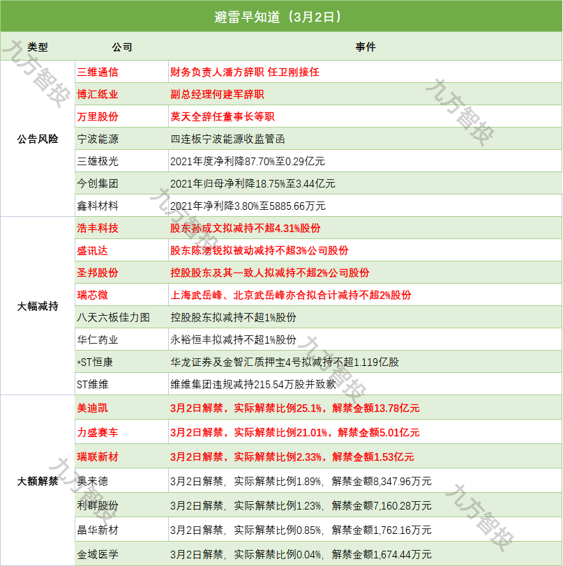 3)美迪凯:3月2日解禁,实际解禁比例25.1%,解禁金额13.78亿元