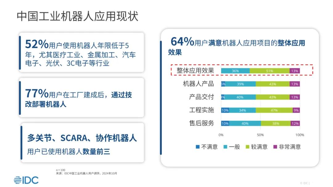 目前,机器人应用加速,用户整体满意度64%