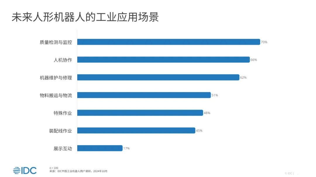 近日,IDC发布了《中国工业机器人应用现状与未来趋势洞察,2025》。报告指出,中国工业用户认可机器人应用价值,其在机器代人、降低成本、提升生产稳定性等方面的价值已被广泛接受。用户对工业机器人加大投资的意愿明确,对人形机器人应用持积极态度,预示着这一领域仍将保持高速增长。