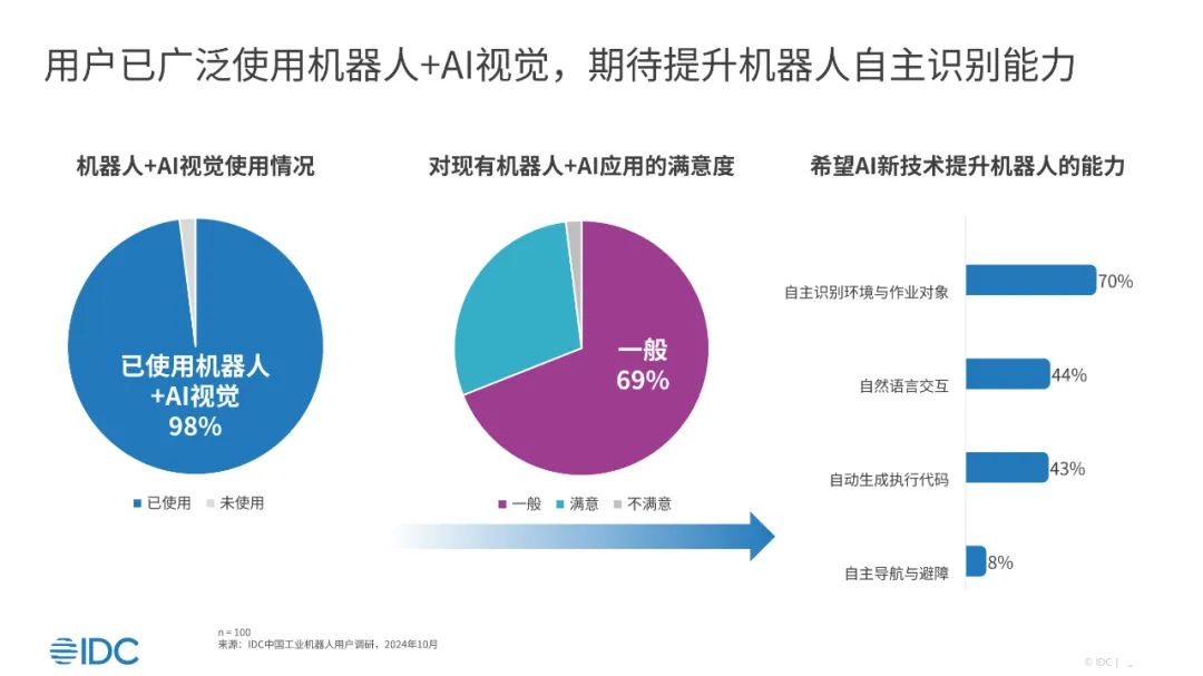 未来,借助AI等新技术,用户最期待提升机器人的自主识别能力。当下,以DeepSeek等AI大模型的应用被认为有望进一步增强工业机器人在复杂环境中的智能感知与自主决策能力。