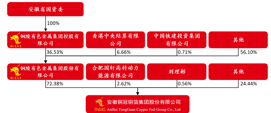 公司实际控制人为安徽省人民政府国有资产监督管理委员会,其法定代表人为王宏女士。截至2023年4月,公司第一大股东为铜陵有色金属集团股份有限公司,系国有法人,持有公司72.38%的股权;合肥国轩高科动力能源有限公司持有公司2.62%的股权,为公司第二大股东。