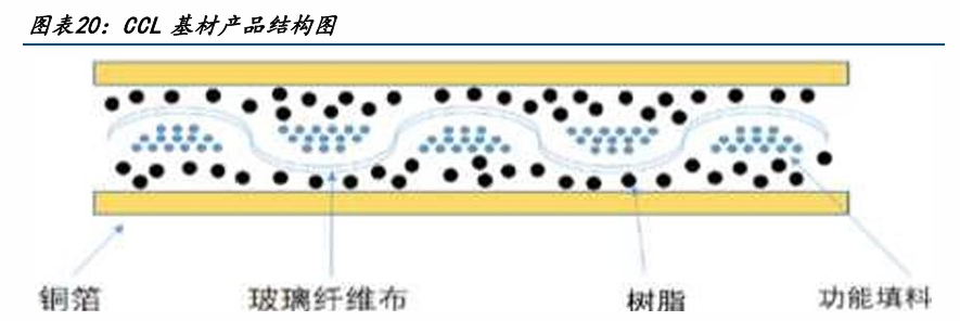 PCB铜箔是CCL/PCB产业链的核心原材料,是沉积在线路板基底层上的一层薄的铜箔,较锂电池铜箔更厚,大多在12-70um,起到导电体的作用。PCB铜箔一面光滑一面粗糙,光面用于印制电路,粗糙面与电子级玻纤布、专用木浆纸、合成树脂及其他材料(如粘合剂、功能填料等)相结合,经加热加压制成CCL。