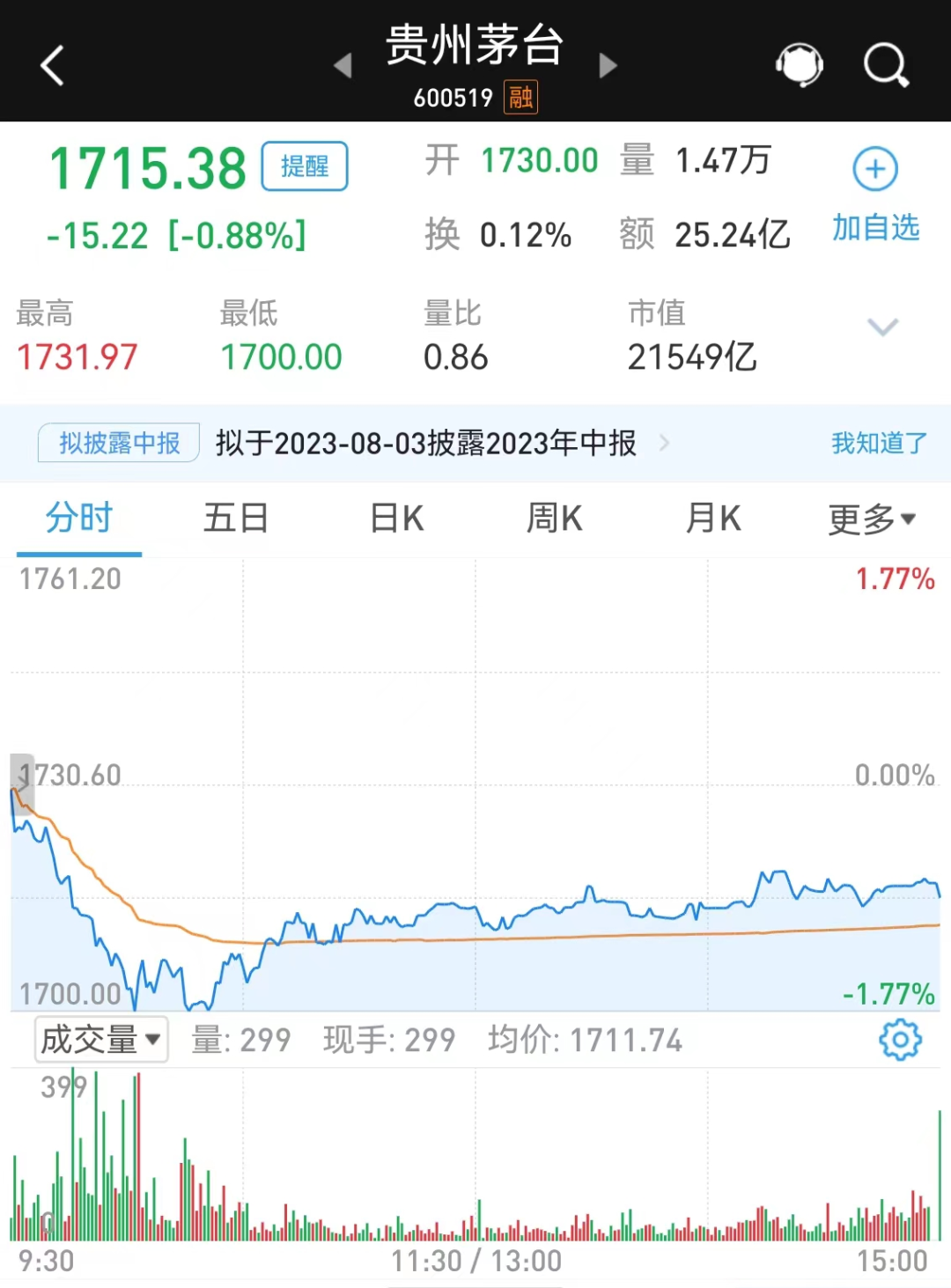 而根据今日收盘价计算,目前买入一手白酒龙头股贵州茅台需要17.15万元。