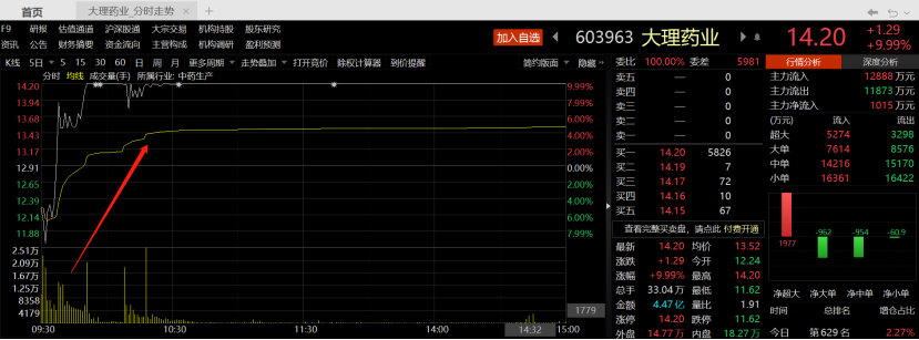 中药股大理药业大幅低开触及跌停,随后两波极速拉升涨停,盘中虽然打开涨停,但随后封上涨停直至收盘,强势拿下四连板,上演惊人的“地天板”一幕。