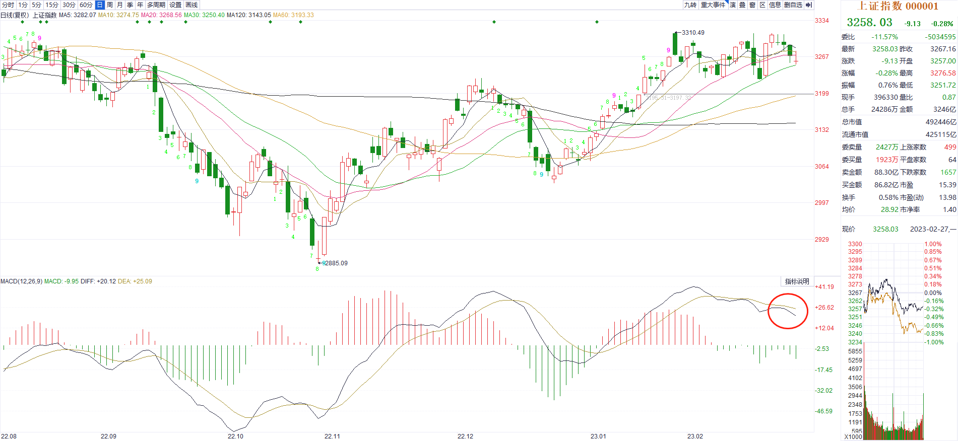 市场节奏方面,日线级别来看,沪指macd指标再次形成反凹形态之后,接下来,如果在向下跌破3223点,就算短期还有反抽,但也意味着市场将正式迎来趋势性破位,下方重要平台支撑会下移至3130位置。期间,虽然可能会有60日均线的抵抗,但也属于重要会议中的抵抗性反抽,难成气候。
