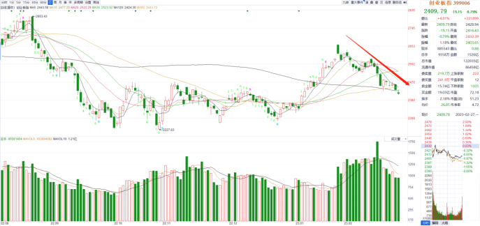 同时,创业板指来看,2661是年后回来第一天的高点,之后,便是一路阴跌……这也验证了为什么个股的操作会这么难,主要还是因为反应中小票走势的创业板指数大势向下。